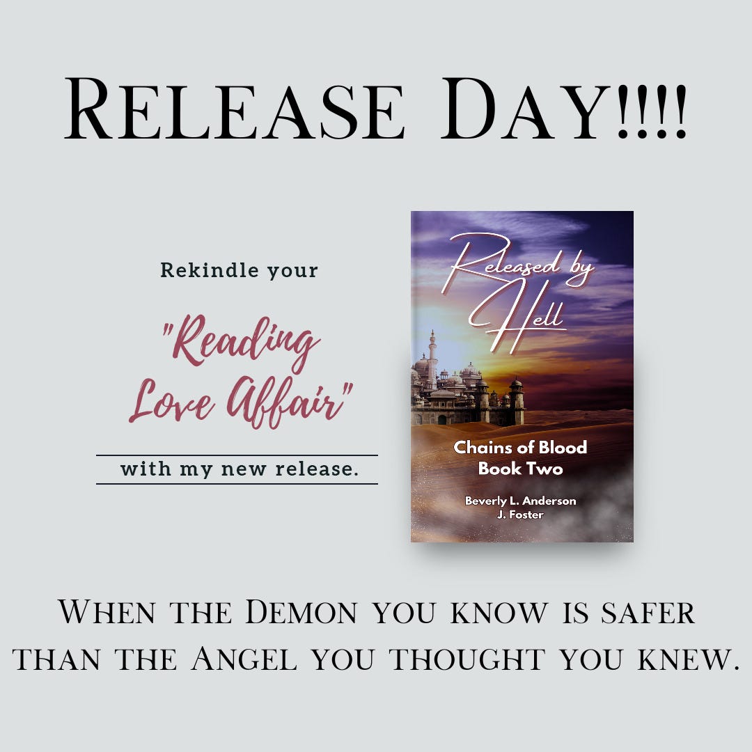 Today’s the day, Release Day for Released by Hell, the second book of Chains of Blood! If you haven’t check out this trilogy, now’s your chance! Book Three comes out soon (if I get finished with it in time!).